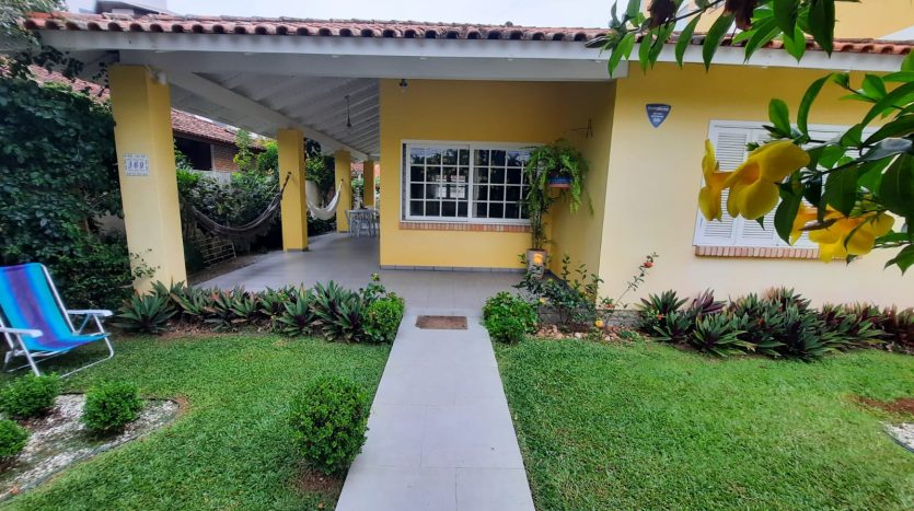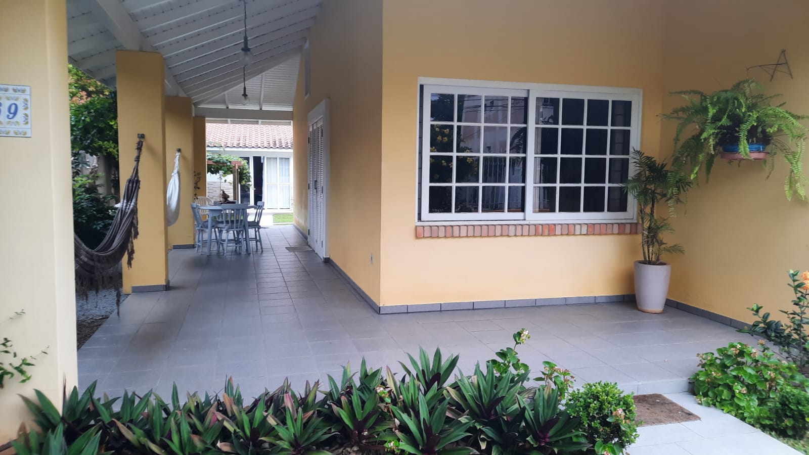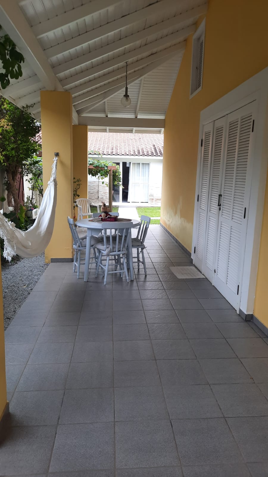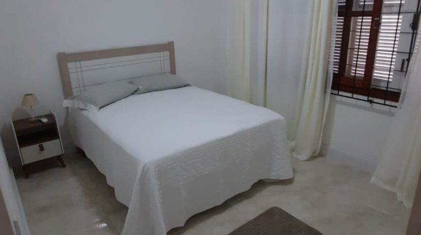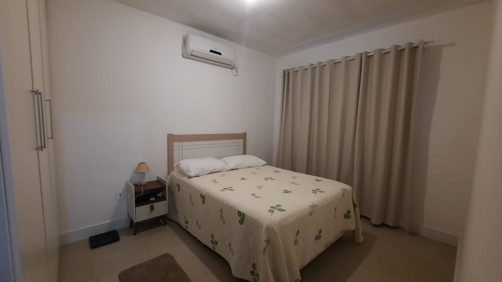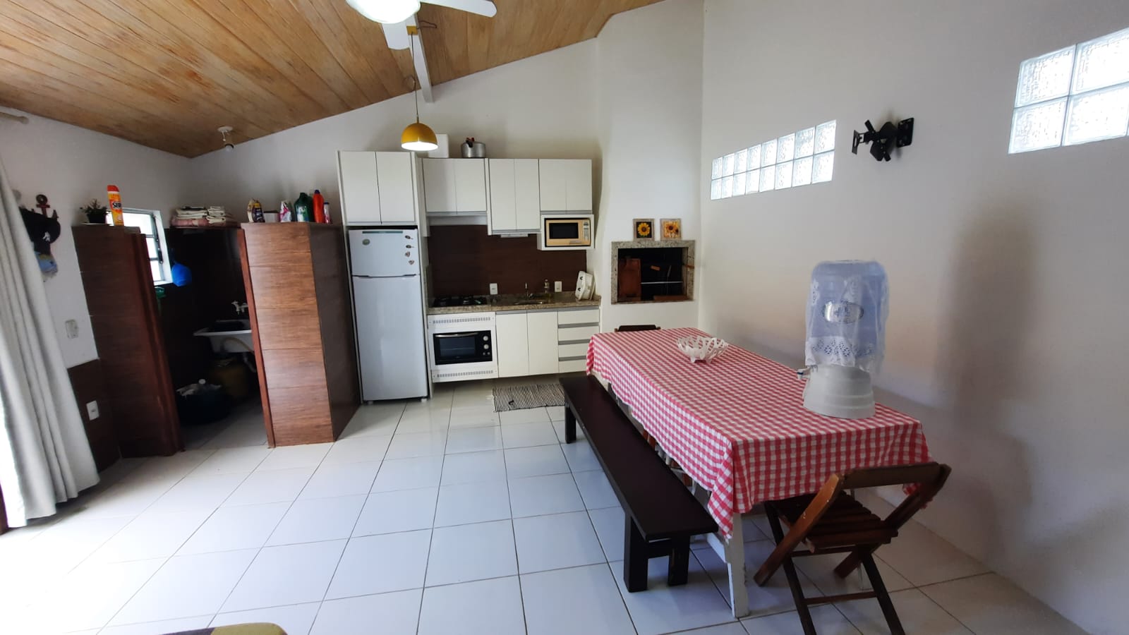 Sendo 1 suíte no quarto da frente c/ar condic., outros 2 quartos de casal com ar, sala conjugada com cozinha que possui ventiladores de teto, TV à cabo c/tela plana, wi-fi, ampla varanda em volta da sala, banheiro social.   Fundos: quarto de casal com ar condicionado, banheiro completo, cozinha e churrasqueira, jardim, 3 vagas de garagem, portão eletrônico.  Capacidade: 08/10 pessoas.  Valor da diária: R$ 900,00 + taxa de limpeza de R$ 400,00