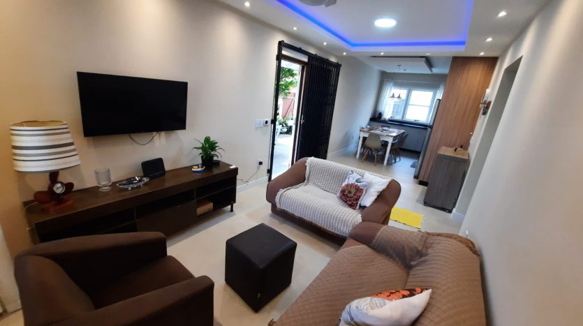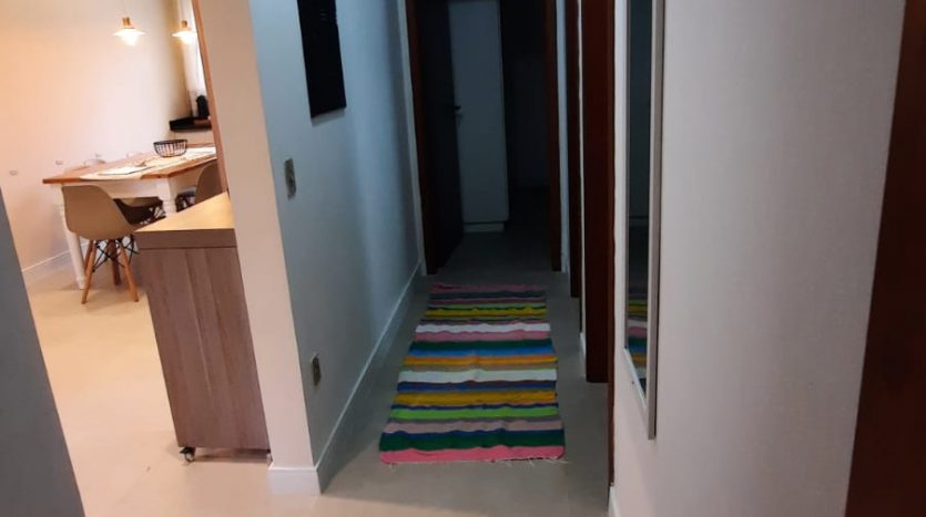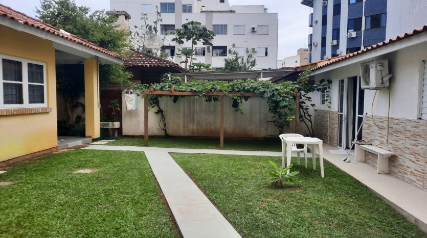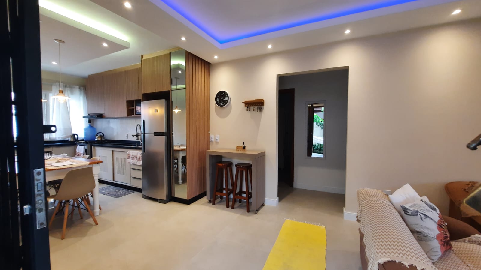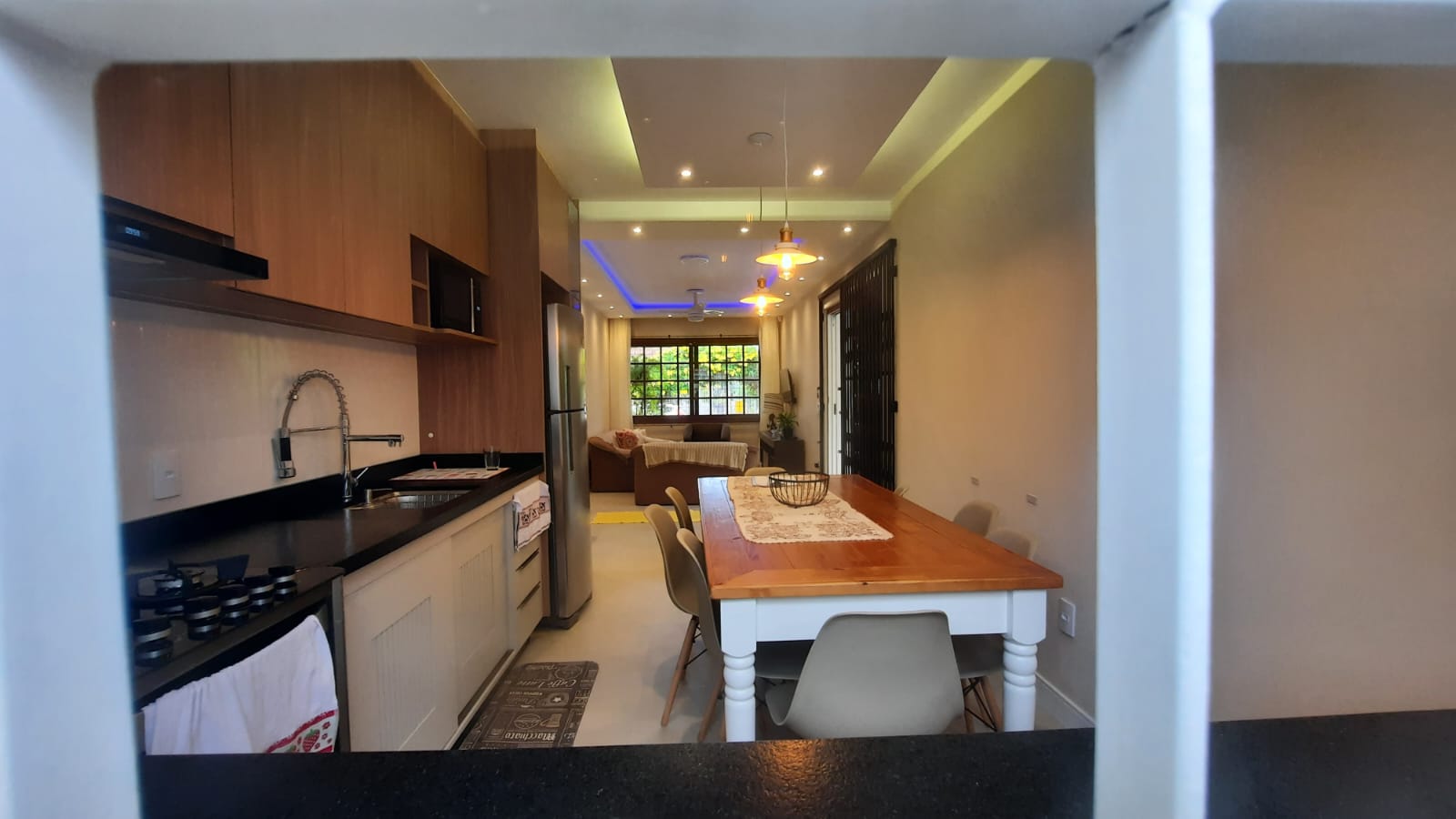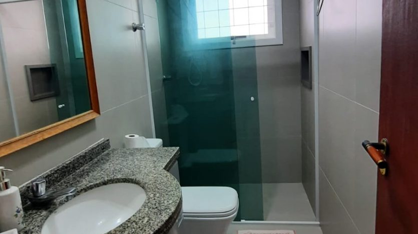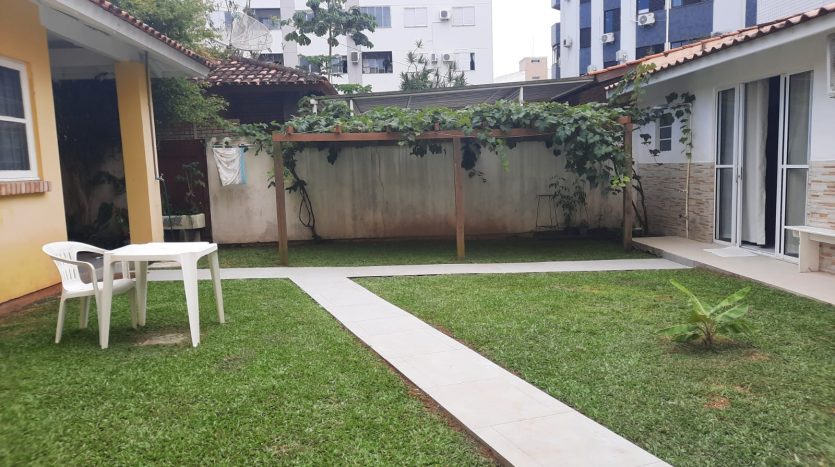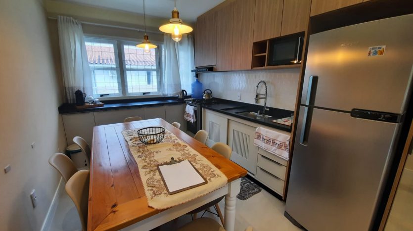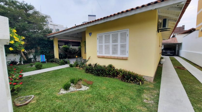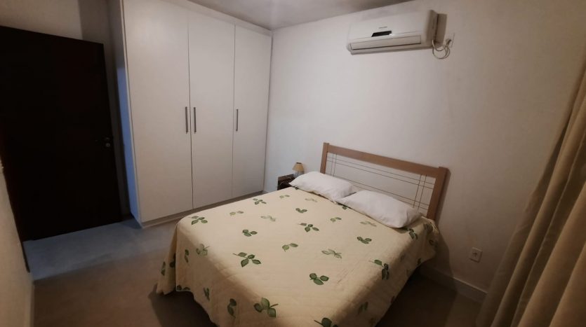 Sendo 1 suíte no quarto da frente c/ar condic., outros 2 quartos de casal com ar, sala conjugada com cozinha que possui ventiladores de teto, TV à cabo c/tela plana, wi-fi, ampla varanda em volta da sala, banheiro social.   Fundos: quarto de casal com ar condicionado, banheiro completo, cozinha e churrasqueira, jardim, 3 vagas de garagem, portão eletrônico.  Capacidade: 08/10 pessoas.  Valor da diária: R$ 900,00 + taxa de limpeza de R$ 400,00
