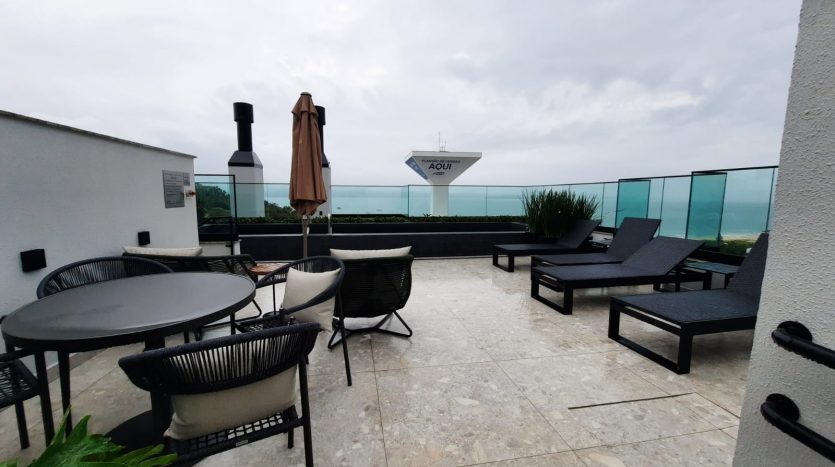 Apto. novo em folha, pronto para mobiliar à seu gosto e aproveitar o verão 2026. 1 Dormitório com banheiro completo, sala conjugada com a cozinha, sacada com churrasqueira e vista deslumbrante para o mar. Andar alto, hall de entrada mobiliado, cobertura com piscina, salão de festas e espaço kids todos equipados e mobiliados. Apto. com 47,62 m2 de área útil + vaga de garagem + vaga privativa para moto. CONFIRA: R$ 1.100.000,00.